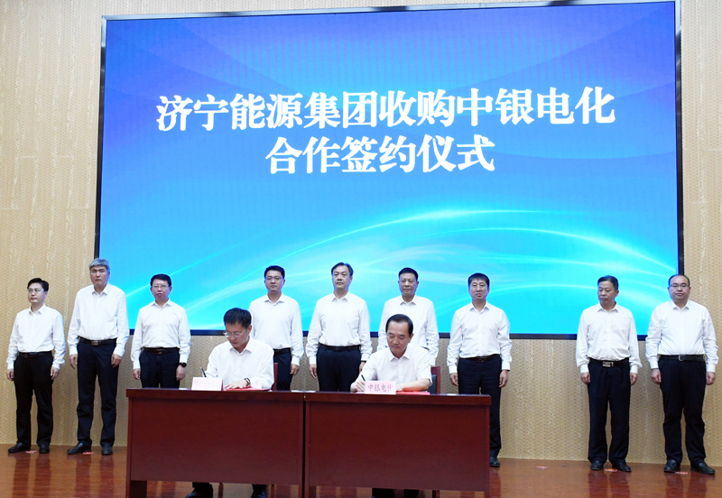 10月15日,济宁能源集团收购中银电化合作签字仪式在汶上县国防大厦举行,济宁市国资委党委书记、主任张华山,汶上县委副书记、县长李强,济宁能源集团党委书记、董事长张广宇,济宁能源总法律顾问杨立新、中银电化党委书记、董事长、总经理赵华盛出席仪式并讲话,济宁能源集团党委副书记、总经理王崇景与中银电化党委书……